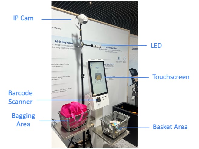 that combine AI video analytics with weigh scales and cameras to monitor transactions and detect suspicious behavior, such as item swapping or unscanned items.