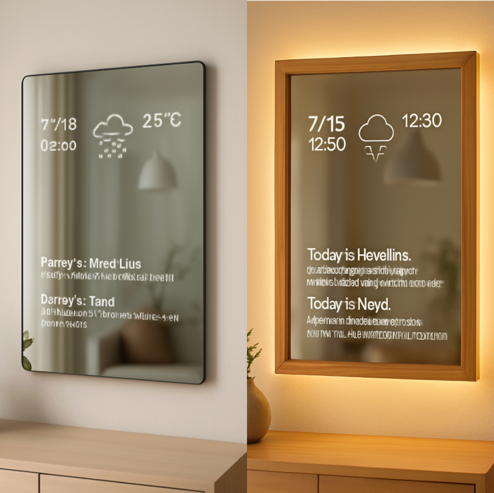 (For example, when family communication deteriorates, the mirror subtly responds with flickering LED patterns resembling storms. As users approach the mirror, gentle prompts appear to encourage deeper reflection on their interactions.)